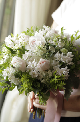 ブレーメンウェディングでは、花業界30年の実績を生かし、1日おひとりの花嫁さま限定でブーケをお作りしています。ブーケのイメージや花嫁さまのこだわりやお好みを、直接お会いしてヒアリングしたり、メールによるお打ち合わせをして花嫁さまのこだわりを形にしています。