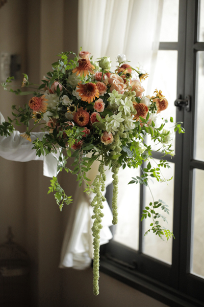 アマランサスを数本垂らして軽やかさをだしました