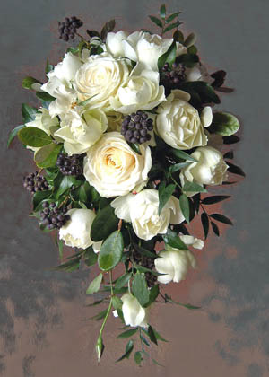 シルバー系の葉物をお入れして冬のウェディングブーケに仕上げました
