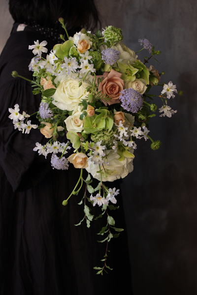 リューココリーネを贅沢に使ったキャスケードブーケです