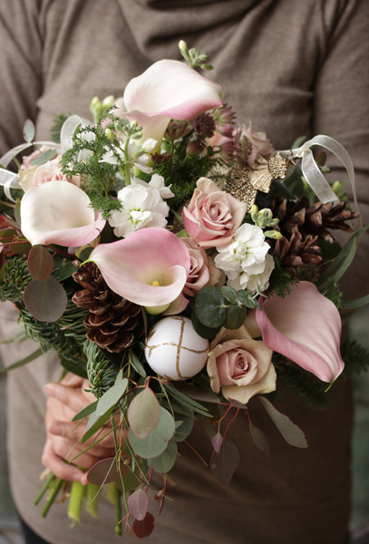 クリスマス時期のウェディングにもお持ちいただけそうなブーケですね