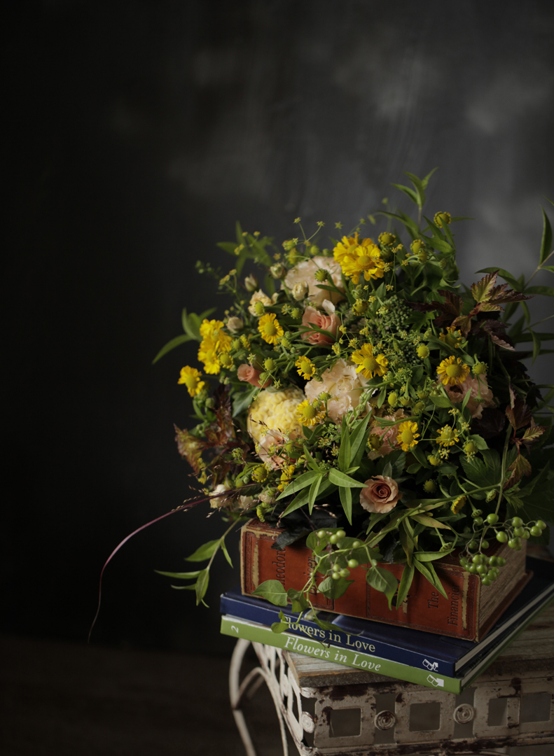 今回はヘレ二ウムをふんだんに使ったナチュラルブーケをお作りいたしました
