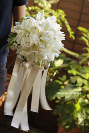 シンプルに百合だけを使ったブーケですが充分華やかさがあります