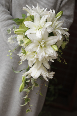 幾重にも重なるユリの花弁が壮麗で とても魅力的なブーケに仕上がります