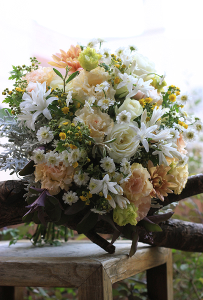野に咲く小花を何種類も集めて作ったような可愛らしいウェディングブーケ。
