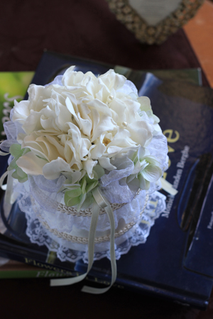 プリザーブドフラワーのガーデニアでリングピローをお作りいたしました!