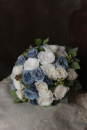 来月 北海道の結婚式場で 式を挙げられる花嫁様にプリザーブドフラワーのラウンドブーケをご依頼いただきました。