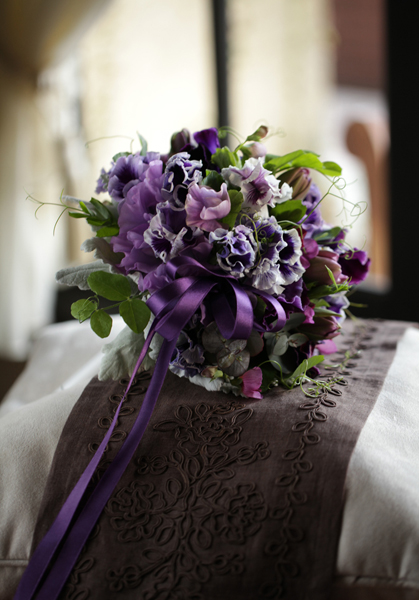 こちらのブーケは濃いパープルのスイトピーをお入れしております。