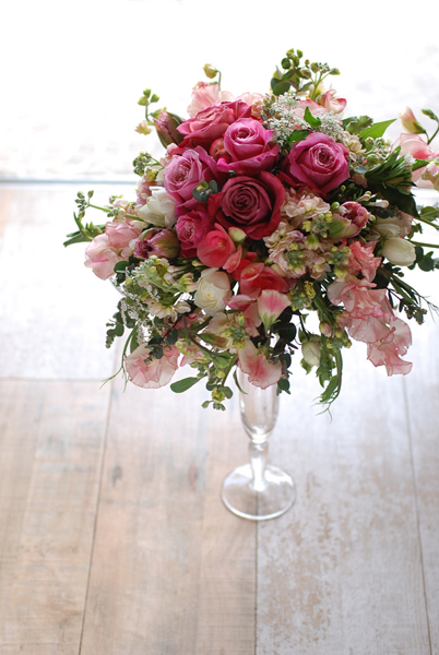 使用した花材は、宿根スイトピー バラ【ディープウォーター】 ライラック ジャスミンです。