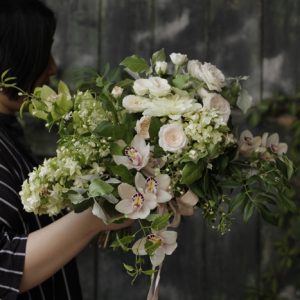 Read Moreシンビジウムを使用して大きなデザインブーケをお作りいたしました シンビジウムは 一輪一輪ワイヤリングをしてガーランドを制作したものを お入れしております 花の向きを自由に変えられますので とて […]