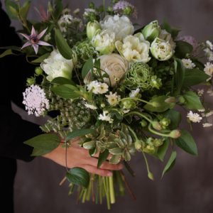 白い八重咲きのチューリップ“スノーキャップ”がメインのクラッチブーケです チューリップを束の中央に集め 他の春のお花でラウンド型に仕上げました クレマチスやマトリカリアで軽やかに動きをだしました   […]