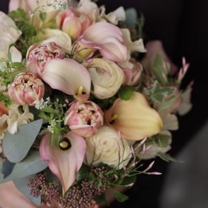 カラーとチューリップのクラッチブーケです コーラルピンクに少しオレンジの筋が入った大人色のカラーは“コーラルパッション” 同系色のチューリップと合わせてナチュラルブーケを制作いたしました &n […]