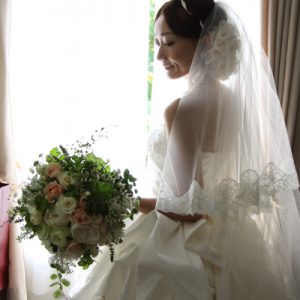 Read Moreバラのナチュラルブーケをお持ちいただいております。 多種類の グリーンは自然に流して。。 挿し色程度にサーモンピンクのバラをお入れいたしました。 チャペルにもよく合 […]
