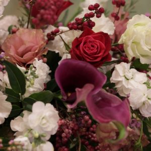 Read Moreボルドー色をした変わり咲きのカラーと白い八重咲きのトルコキキョウで フローイングスタイルのアレンジメントをお作りいたしました 流れるようにお入れした赤い実は“シンフォリカルポス”です &nbs […]