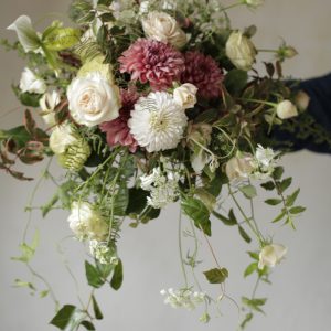 Read More2種類のダリアとアンティーク色のバラを使用してデザインブーケをお作りいたしました ホルダーでお作りいたしました 基本の挿し方をやめて 花の向きや形を自由に 制作してみました かな […]
