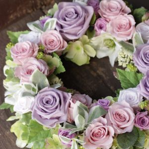 プリザーブドのリースアレンジメントです 壁掛けにしても 置いても 飾れるリースアレンジメントはウェディングのアイテムでも 人気の商品です 葉物や実物は アーティフィシャルフラワーを使用しております お花は優 […]