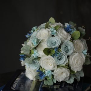 企業様への撮影用ブーケとしてブルーのラウンドブーケをご用意いたしました 花嫁のお父様が制作したブーケというストーリー付きでご依頼をいただきました 優しいブルーの中に濃いめのブルースターをポイントにお入れして […]