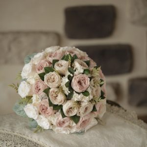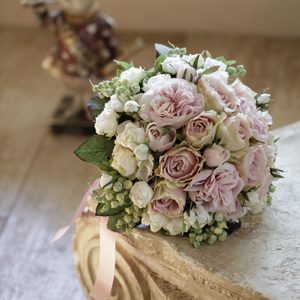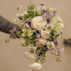 ラナンキュラスとパンジーで軽さのあるキャスケードブーケをお作りいたしました 小柄な花嫁様にピッタリのサイズです! 淡いパープル色のストックやパンジーは、ほんのりピンクがかったラナンキュラスとの […]