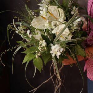 白いアンスリウム Posted on 07/25/201807/25/2018 by Mina 白いアンスリウム“シャンパン”を使用したクラッチブーケです! ミスカンサスやソリーフという変わった葉物でナチュラル感を出しております。 サテンのリボンではなく ナチュラルに こだわってラフィアを手元に 巻き […] Read More