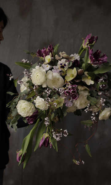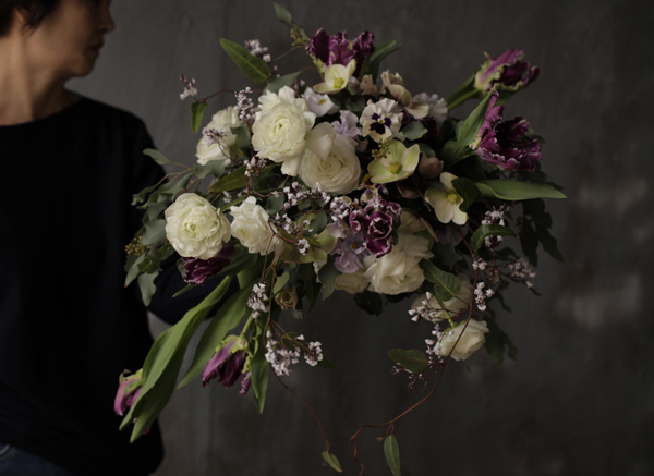 ミステリアスパロットという素敵なチューリップを使ってデザインブーケをお作りいたしました