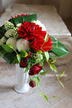 ダリアとピンポンマムのブーケ 1月 9 Mina Tweet Pocket 大輪のダリアと白いピンポンマムを大きな葉物と組み合わせました とてもエキゾチックなブーケに仕上がっております リゾートでのウェディングなどにいかがでしょうか お届ブレーメンウェディングは生花ウェディングを直接会場へお届けいたします 生花ウェディングブーケ、プリザーブドブーケ、アーティフィシャルブーケ、その他ウェディング小物等ご希望の方は、お気軽にご相談ください 【プリザーブドフラワー、アーティフィシャルフラワーの商品は全国配送を承らせていただいております】