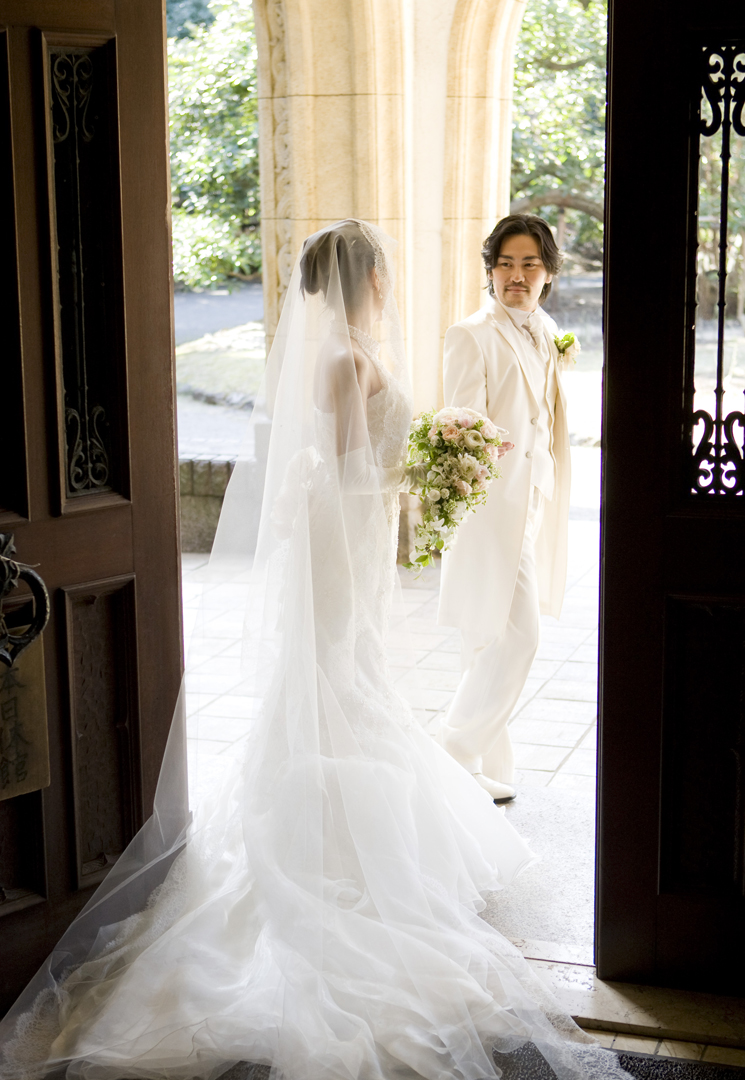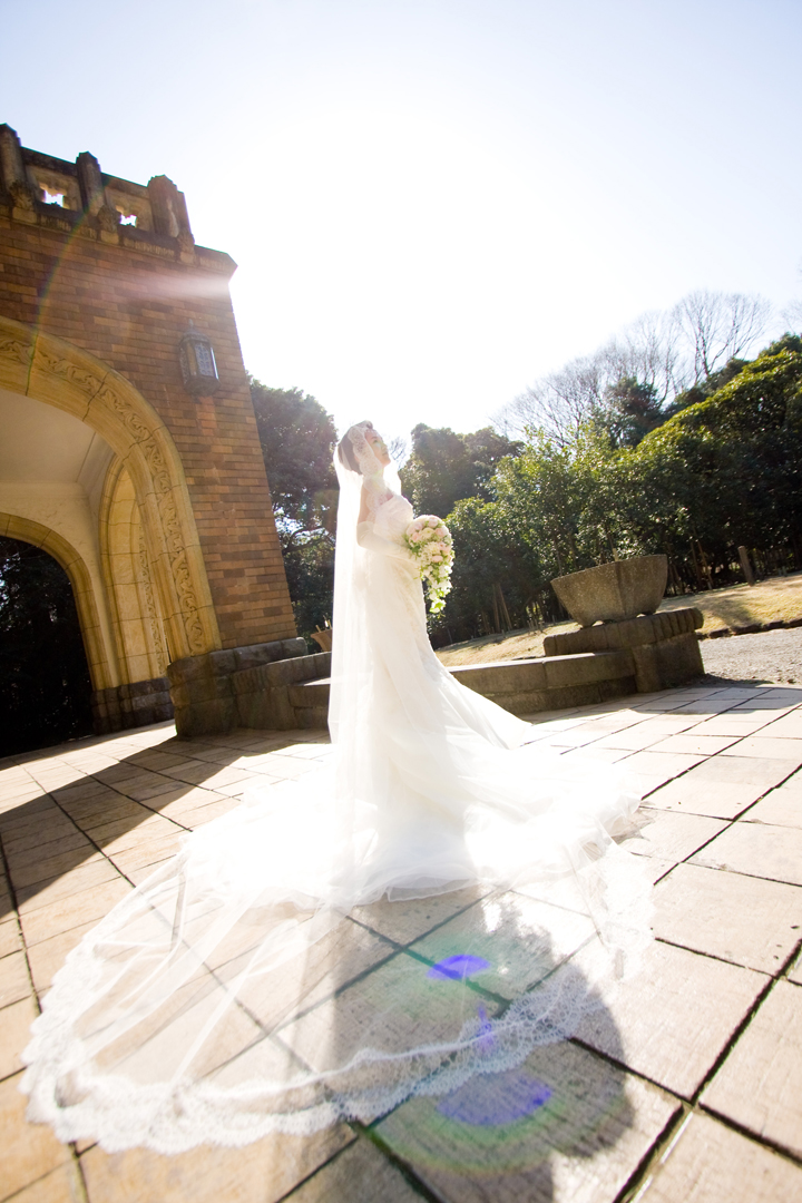 旧前田家本邸でのロケーションフォトにクレッセントブーケをご用意させていただきました