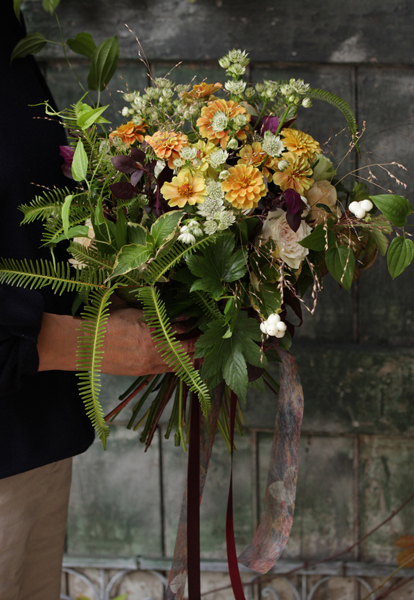 小ぶりのジニアと草花を組み合わせてナチュラルなブーケをお作りいたしました