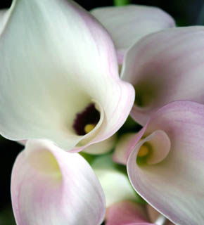 カラー見事なまでのサーモンピンクのこのカラーはレアな花材です。主役級のお花なので、花数は少なめにして最大限に美しさを引き出したいものです。