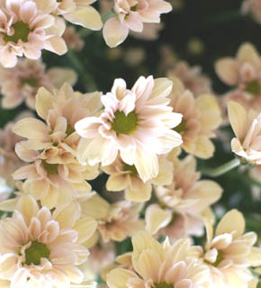 ころころとした丸い形は、菊のイメージを払拭。とくに海外での人気が先行した お花です。丸い花形をより強調するラウンドブーケにおすすめです。