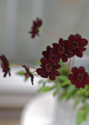 黒という色にもかかわらず、小さな蝶が舞うような可愛らしさがあるのは柔らかい曲線とその花の形によるものでしょう。人気のお花です。
