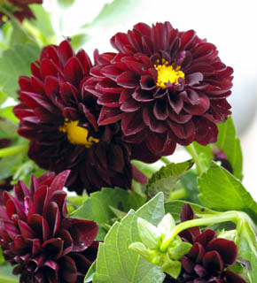 ダリア花径6~7cm程度の小ぶりの品種。エンジ色を濃くした花の色は、シックブーケの主役。バラなどの洋風のお花との組み合わせましょう。ドレスにも和装にもお似合いになります。