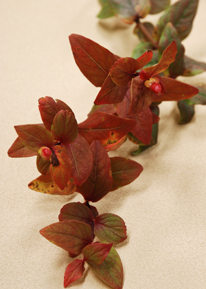 紅葉したヒペリカム。葉の色が秋らしく、花と合わせて秋のアレンジに仕上げます。ナチュラルなガーデンウェディングにもぴったりです。