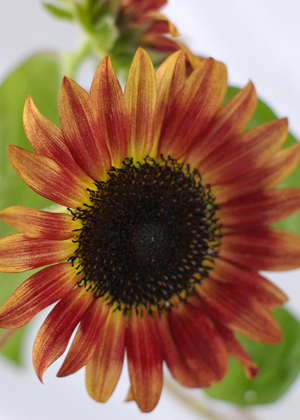 ヒマワリ秋の初めに咲く向日葵。濃褐色の一重咲きでエンジとクリームのグラデーションがとてもきれいです。しなやかな茎なので、花の向きに動きが出てナチュラルな仕上がりになります。