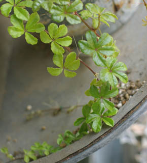 5枚の小さな葉がつる状につらなった愛らしいグリーン。ラウンドブーケに動きをつけたりキャスケードの下垂するグリーンとして、最近人気の花材です。