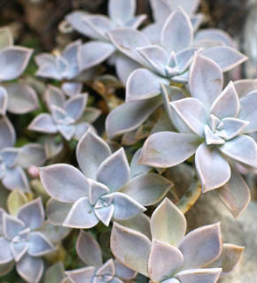 花のような形、肉厚の質感。個性的なブーケやアレンジに準主役になる多肉植物です。冬から春先は、紫色をおびてとくに美しい色に。