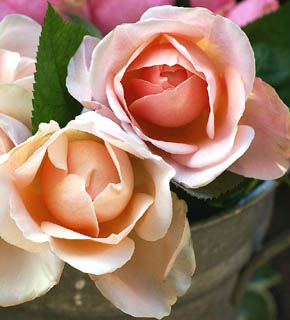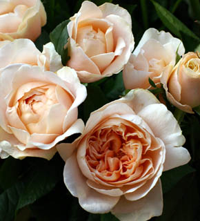 淡いアプリコット色のロゼット咲きのバラ。やわらかい茎に、うつむくように咲く姿が、さりげなくて美しい。香りも高く、大変人気のあるバラです。ブーケの主役にしたいお花です。