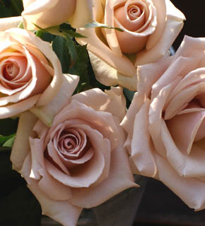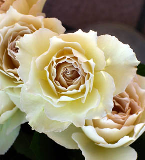 ミルクがたっぷりと入った、キャフェのような印象のバラ。中間色なので、どんなお花とも相性がいいバラです。大輪なので、主役としても使えます。