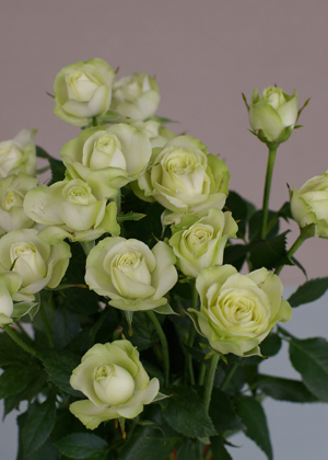 スプレー咲きには珍しいグリーンローズ。クリーム色に薄い緑が入っています。 1本に10輪ほどついていて、ボリュームもあり、爽やかなブーケに仕上がります。