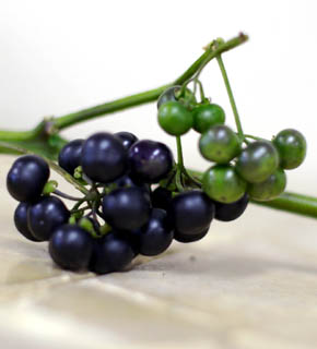 黒真珠の名の通り、紫色を限りなく黒に近づけた、光沢のある秋の実もの。枝ごとアレンジしたり、ひとつずつブーケに入れることもできます。