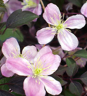 クレマチス モンタナつる状の茎にほんのりピンク×紫色の小さなお花がついています。葉といっしょに垂れ下がる花材として使いましょう。ナチュラルでエレガントなブーケになること請け合い。