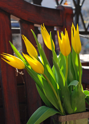 チューリップぱっと目を引く鮮やかな黄色のユリ咲きタイプのチューリップ。満開になると本物のユリのようにきれいに咲きます。