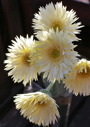 ガーベラ 細く繊細な花びらが特徴のガーベラ。原種に近い姿です。優しいベージュホワイトがウェディングシーンにもお似合いです。