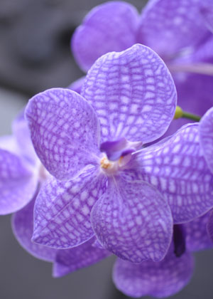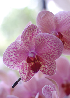 赤紫の網目模様の胡蝶蘭。たいへん珍しく個性的なブーケに仕上がります。合わせるお花によって洋装にも和装にも似合うブーケになります。