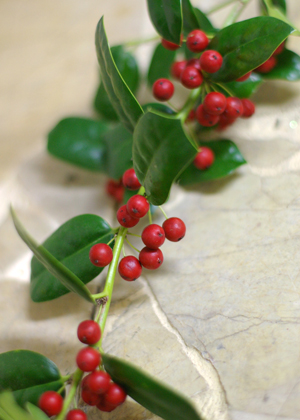まっかな実と、とがった葉っぱが特徴。アレンジに加えると華やかに クリスマスを 演出してくれます。
