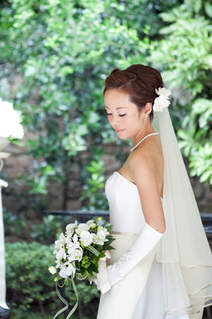 個性的でこだわりの花嫁さまのためにお作りした、コチョウランのラウンドブーケ。シンプルモダンに仕上げました。