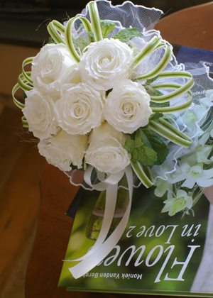 ブーケトスやブーケプルズ用のミニブーケです。プリザーブドローズでお作りしました。お友達へのプレゼントにも、どうぞ。